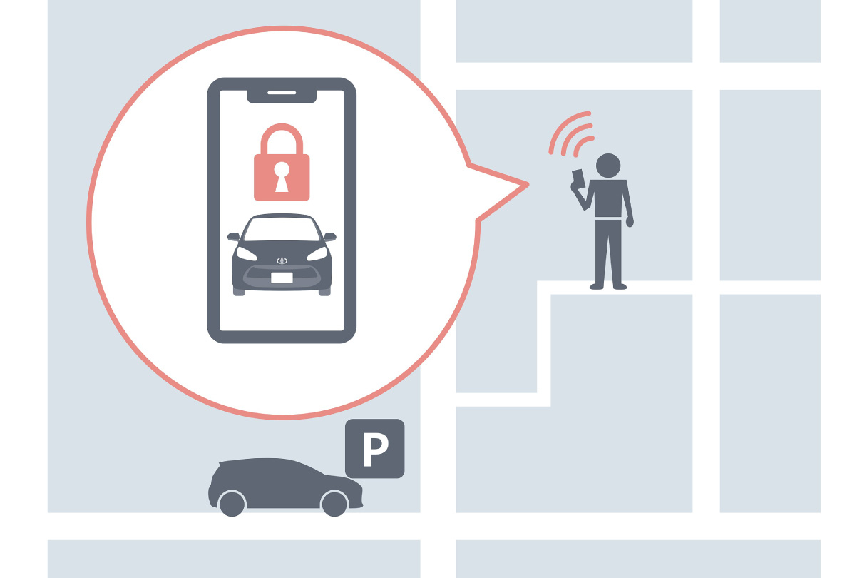 スマートフォンに専用アプリ「デジタルキー」をインストールすることで、スマートフォンをクルマのキーとして使用できます。*3アプリの画面を操作してロック/アンロックが可能になることに加え、アプリを起動したスマートフォンを携帯していれば、画面操作なしでロック/アンロック・クルマの始動をすることも可能です。*4